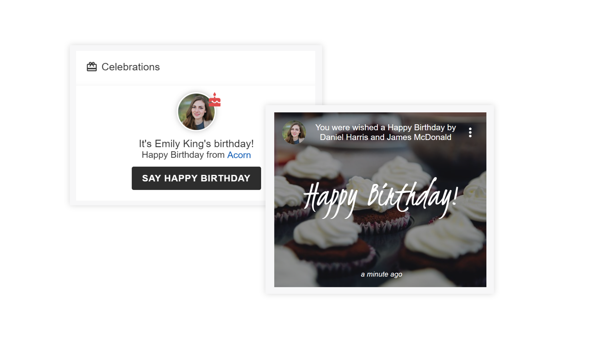This feature helps your company boost morale and let your employees know that you care by celebrating milestones like birthdays and work anniversaries. The employee recognition feature has an inbuilt timeline, meaning your employees can comment on achievements at any time. This creates a positive working environment, which will in turn, boost morale and improve employee wellbeing.
