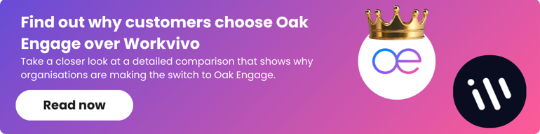 Oak Engage is designed to help organisations stay connected with every employee, especially frontline and deskless teams, often the last to receive important information. While Workvivo is known for its sense of community, many organisations need more clarity, reliability and structure as their workforce grows. Oak’s mobile-first experience, targeted content delivery and intuitive app make it easy for people on the move to stay informed, wherever and whenever they work. This focus on practical, real-world communication is reflected in Oak’s higher satisfaction ratings on G2 across the employee newsfeed, support and overall experience.