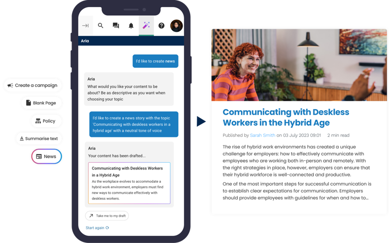AI intranet: An AI-powered intranet brings significant benefits to corporate communication by leveraging artificial intelligence. It enables personalised communication by analysing employee data and delivering targeted messages based on individual preferences. This personalisation enhances engagement and relevance in communication. Additionally, AI automation streamlines communication processes, saving time and increasing efficiency. Tasks like document categorisation and answering common queries can be automated, freeing up employees for more strategic work. AI-powered analytics provide valuable insights into communication effectiveness, allowing organisations to make data-driven decisions and continuously improve their communication strategies. Overall, an AI intranet enhances engagement, efficiency and effectiveness in corporate communication.