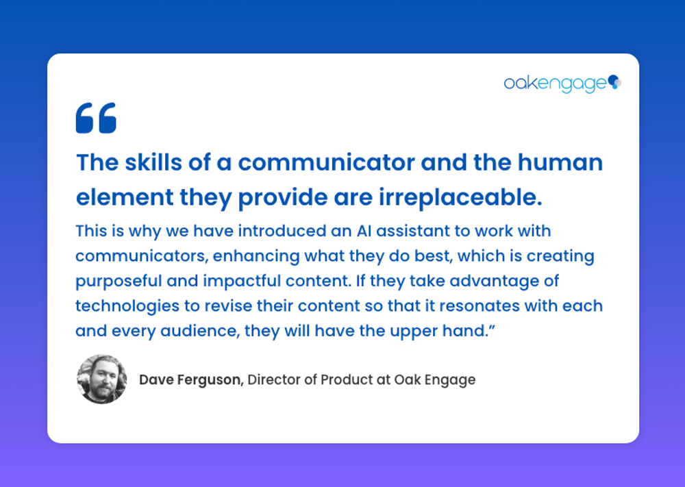 AI and automation are powerful tools that can transform internal communications, from enhancing efficiency and personalisation to enabling data-driven decision-making and predictive analysis. However, as our Director of Product, Dave Ferguson points out, the human element remains central to successful communication. The challenge then lies in embracing these technologies to amplify human connections rather than replace them.