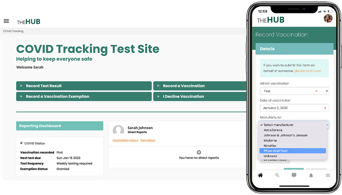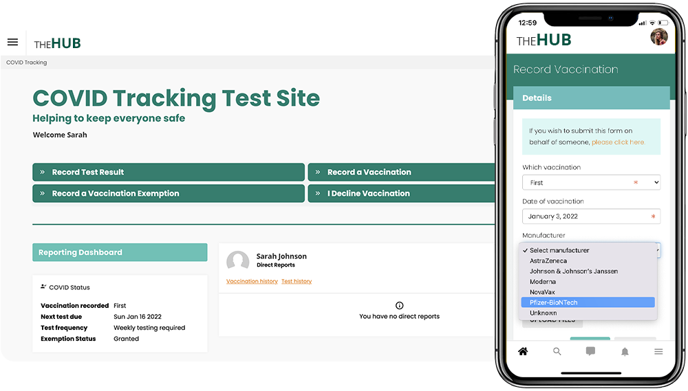 Using a simple online form, employees can enter details of their first and second vaccinations, complete with dates and manufacturer.