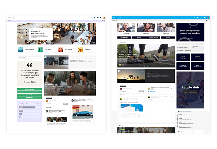 As these diverse intranet design examples show, the potential of your company design is unlimited. Design includes a multitude of elements, it can be anything from fonts and colours to features, applets, layout, content and more. When these come together and unite in a strategic way, your company intranet will become unique and remarkable.