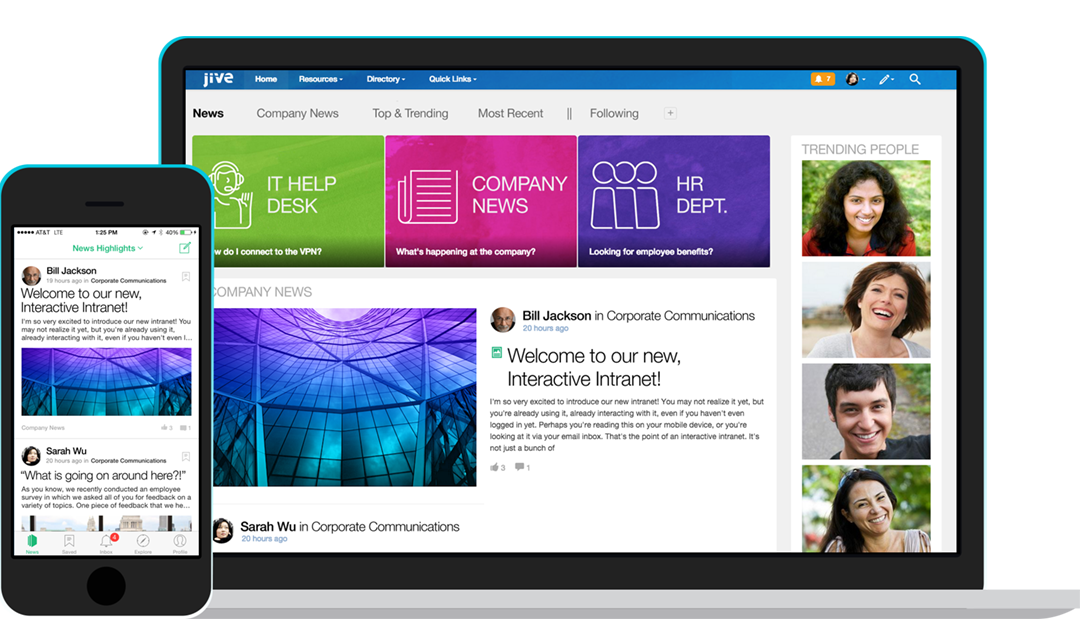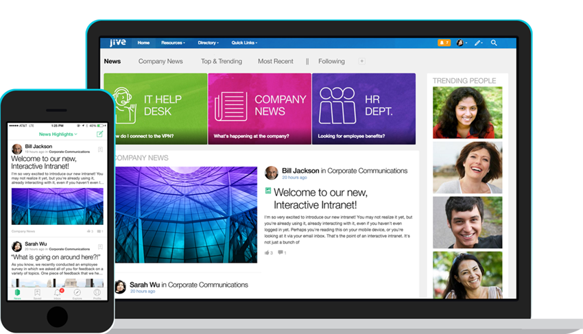 Jive provides a gateway to everything employees need to get their jobs done. It’s a platform that provides company communication, team collaboration, employee engagement and more.