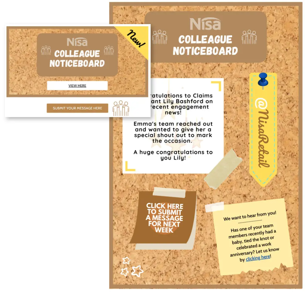 Back at the office, we have numerous notice boards which many colleagues would visit for a quick browse before they start work or on their lunch break. We recently decided to create a virtual notice board that houses similar content to the one back at Nisa HQ.