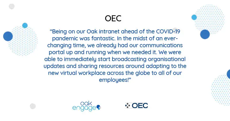 OEC: The beauty of a digital world means we can find everything we want at the click of a button. The same should be said when it comes to searching for things in your workspace. With Oak, OEC were able to share single documents for all employees to a centralised location.