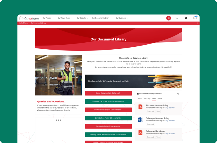 The collaboration between Oak Engage and ScS aims to revolutionise the way ScS connects with its colleagues. Oak has provided a modern company intranet and employee engagement app that reflects ScS’s brand identity and enables colleagues to easily access a wide range of tools and resources from anywhere, at any time.