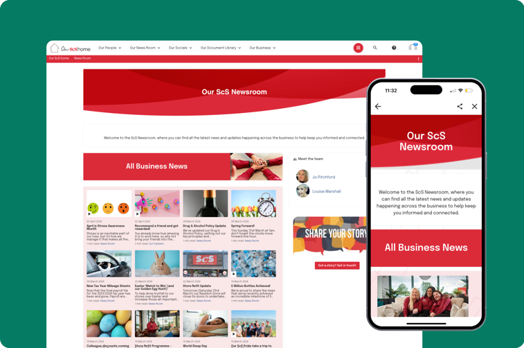 ScS, a leading sofa and flooring specialist, faced significant challenges in connecting its dispersed workforce. With 101 stores across the UK, 9 distribution centres, a digital hub, a support centre and 1,700 colleagues working in various departments - the company struggled with outdated systems that hindered effective communication, collaboration and recognition of colleague achievements. This led to feedback from colleagues who found it difficult to access key information and feel connected to the wider organisation.